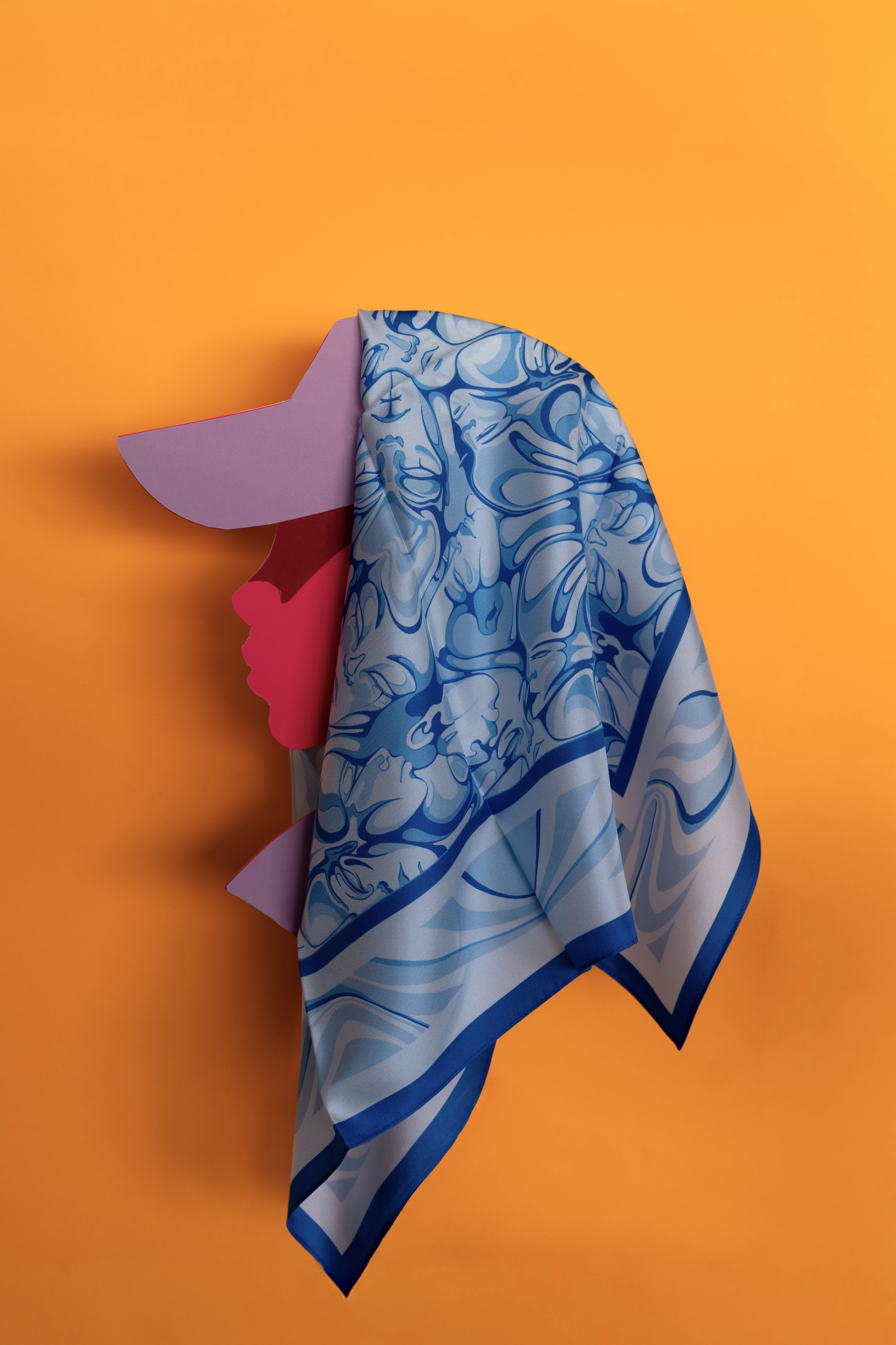 65x65cm silk scarf with Fede's design. 14mm 100% Mulberry Silk Twill.