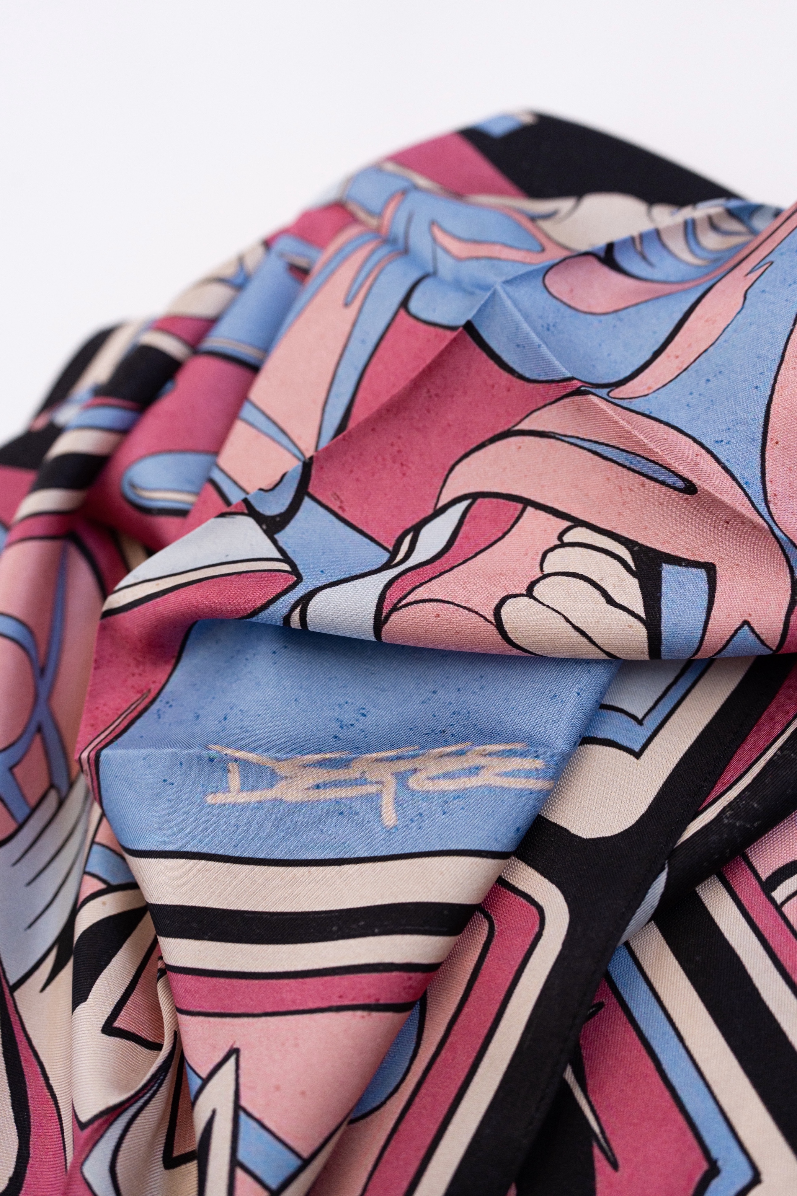65x65cm silk scarf with Fede's design. 14mm 100% Mulberry Silk Twill.
